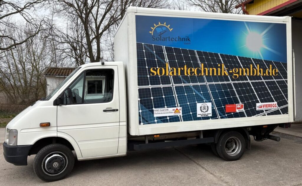 Hier ist unser Schmuckstück. Wir haben unseren Transporter neu folieren lassen. Ist sehr schön geworden, würde ich sagen.