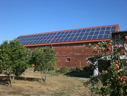 Bei der Installation auf einer Scheune wie in Brädikow ist eine sorgfältige Planung entscheidend. Die große Dachfläche bot ideale Voraussetzungen für eine maximale Nutzung der Sonnenenergie. Unsere Experten haben die Module so ausgerichtet, dass sie die Sonneneinstrahlung optimal einfangen und gleichzeitig die statischen Anforderungen des Daches berücksichtigen.