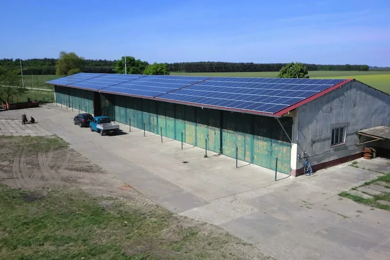 In Rhinow haben wir eine großflächige Photovoltaikanlage mit einer beeindruckenden Leistung von 87,75 kWp installiert. Die Anlage besteht aus 325 hocheffizienten PANDA-Modulen von Yingli, die auf einer speziell aufgenieteten Unterkonstruktion montiert wurden. Wechselrichterseitig sorgen fünf Sunny Tripower-Geräte von SMA für eine optimale Umwandlung der erzeugten Energie und eine zuverlässige Einspeisung ins Stromnetz.